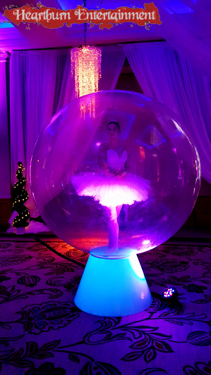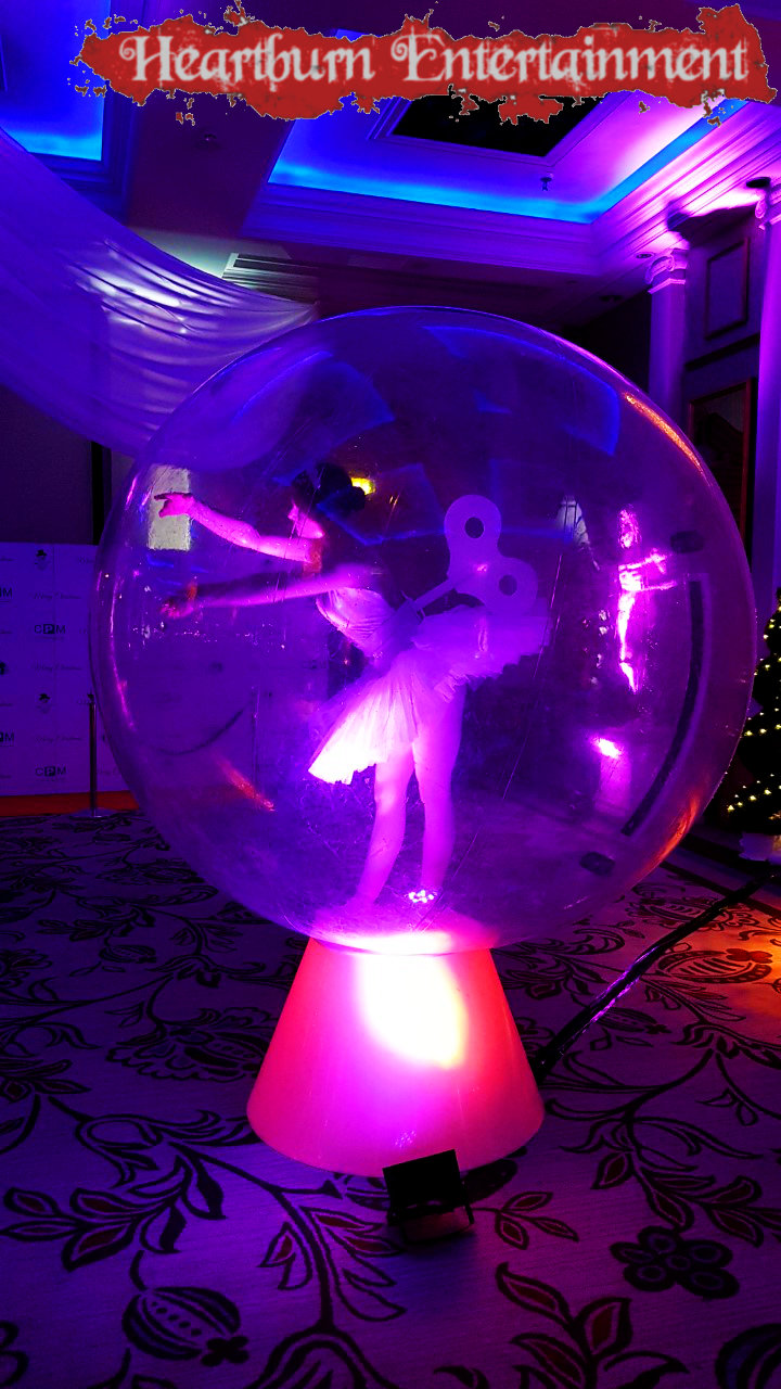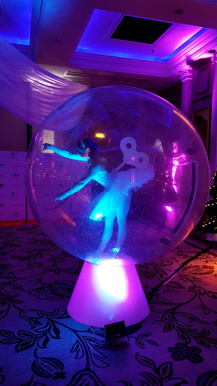 Our clockwork ballerina can either be hired as a meet and greet act or a show. Our clockwork ballerina can even perform inside our lizesize snowglobe!