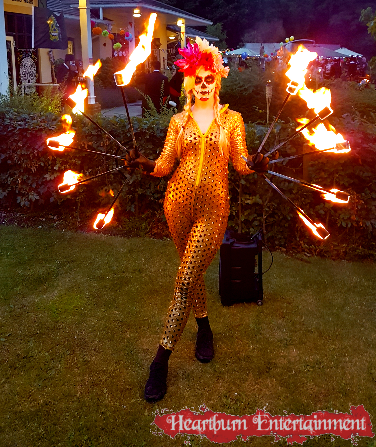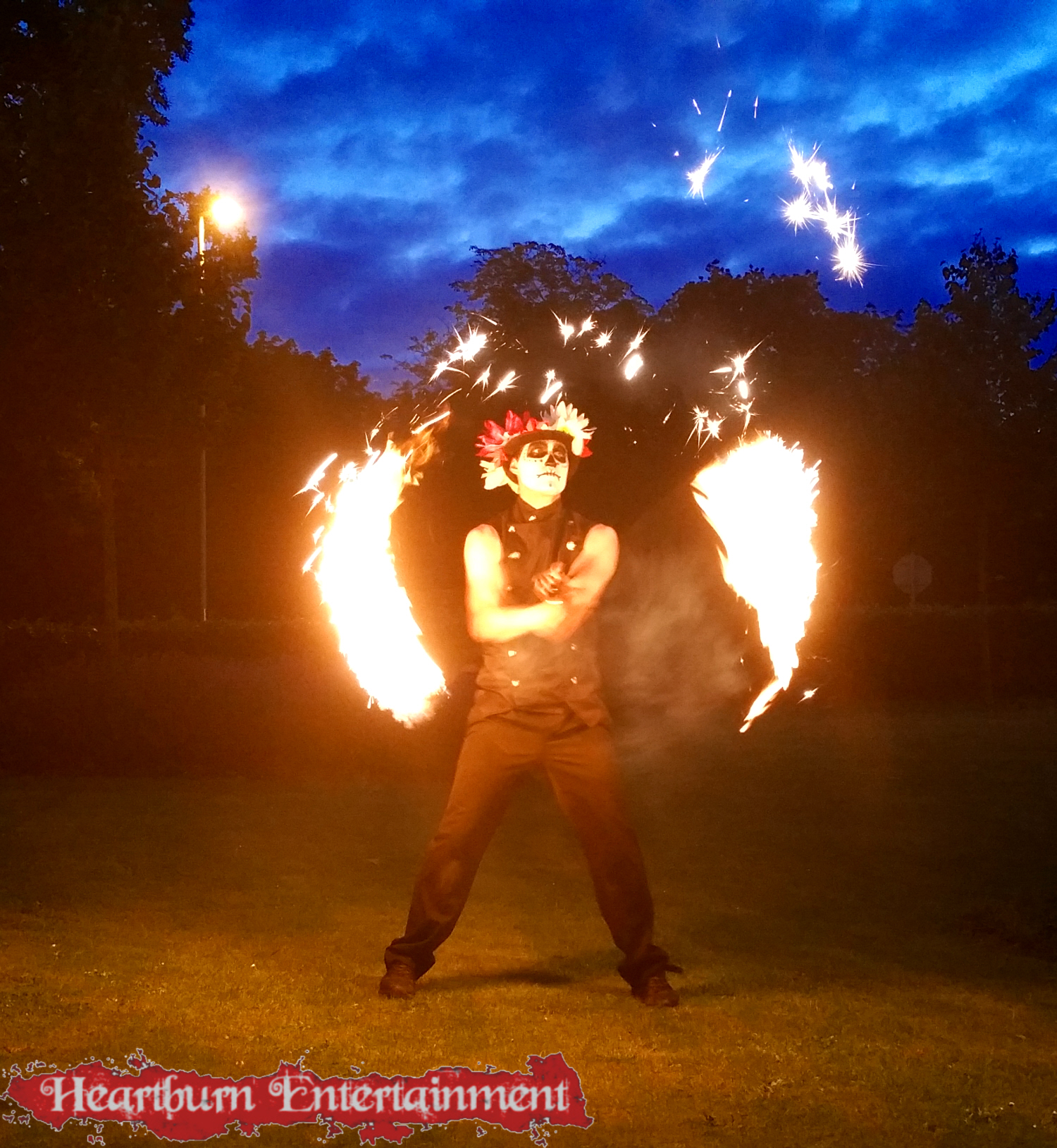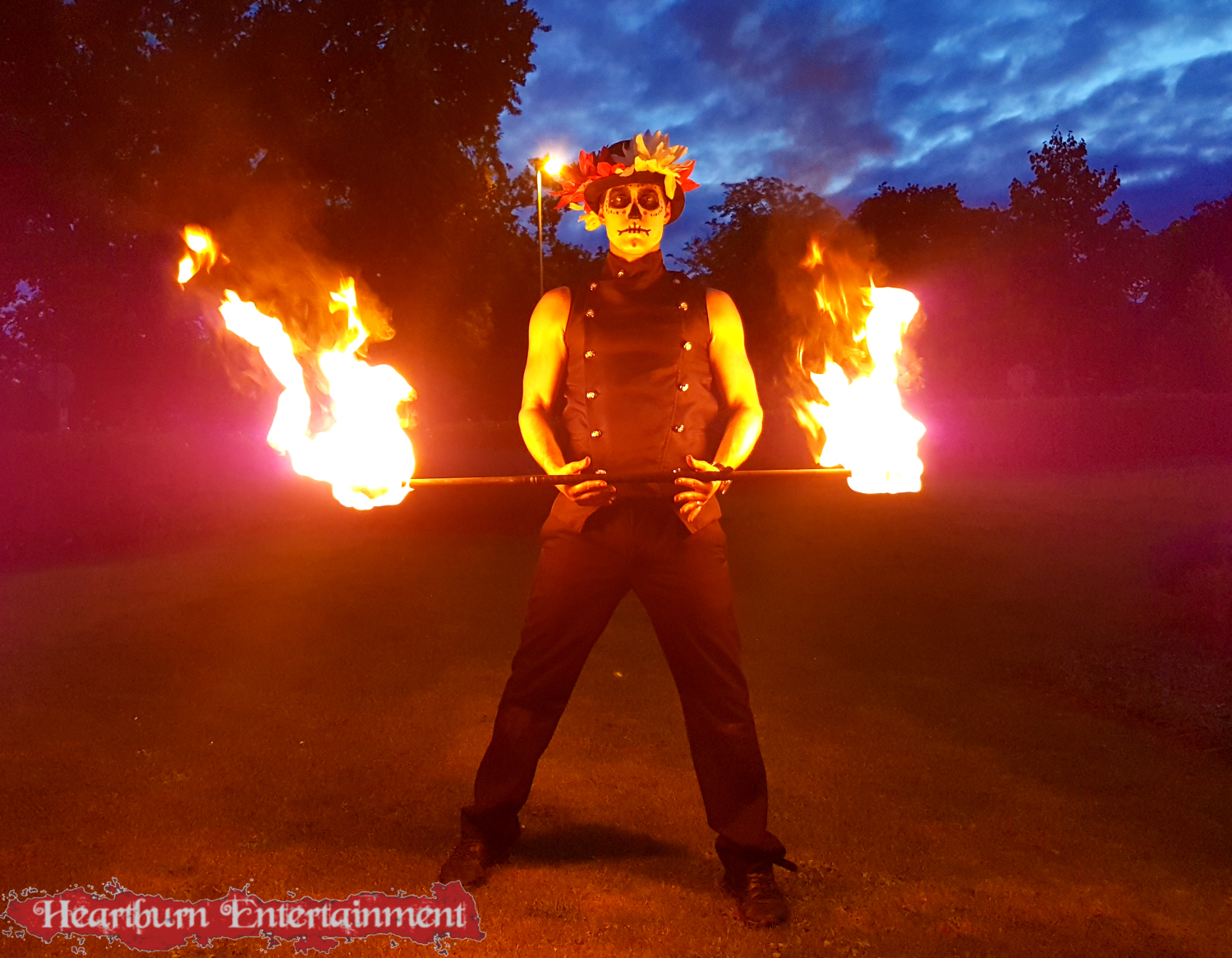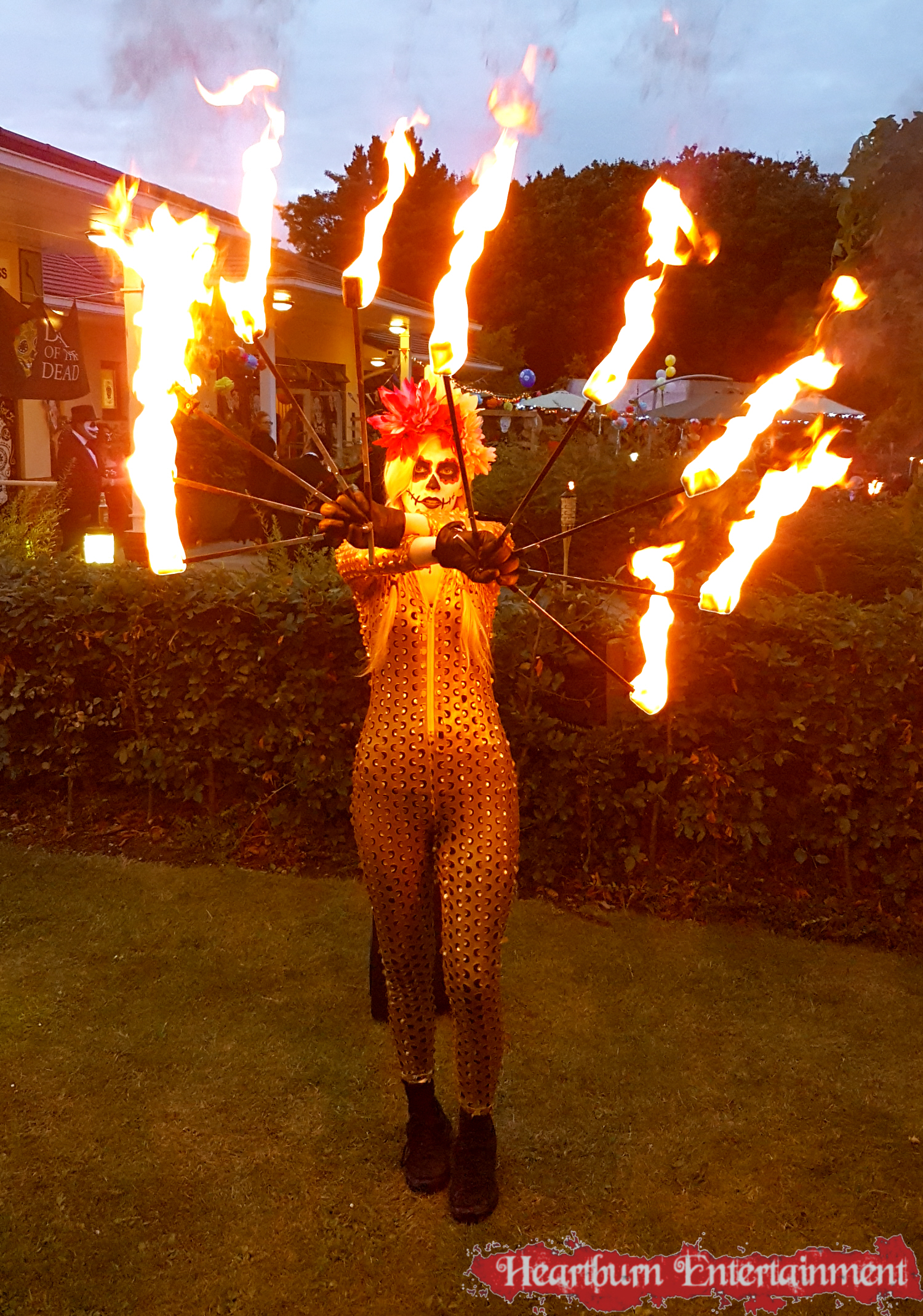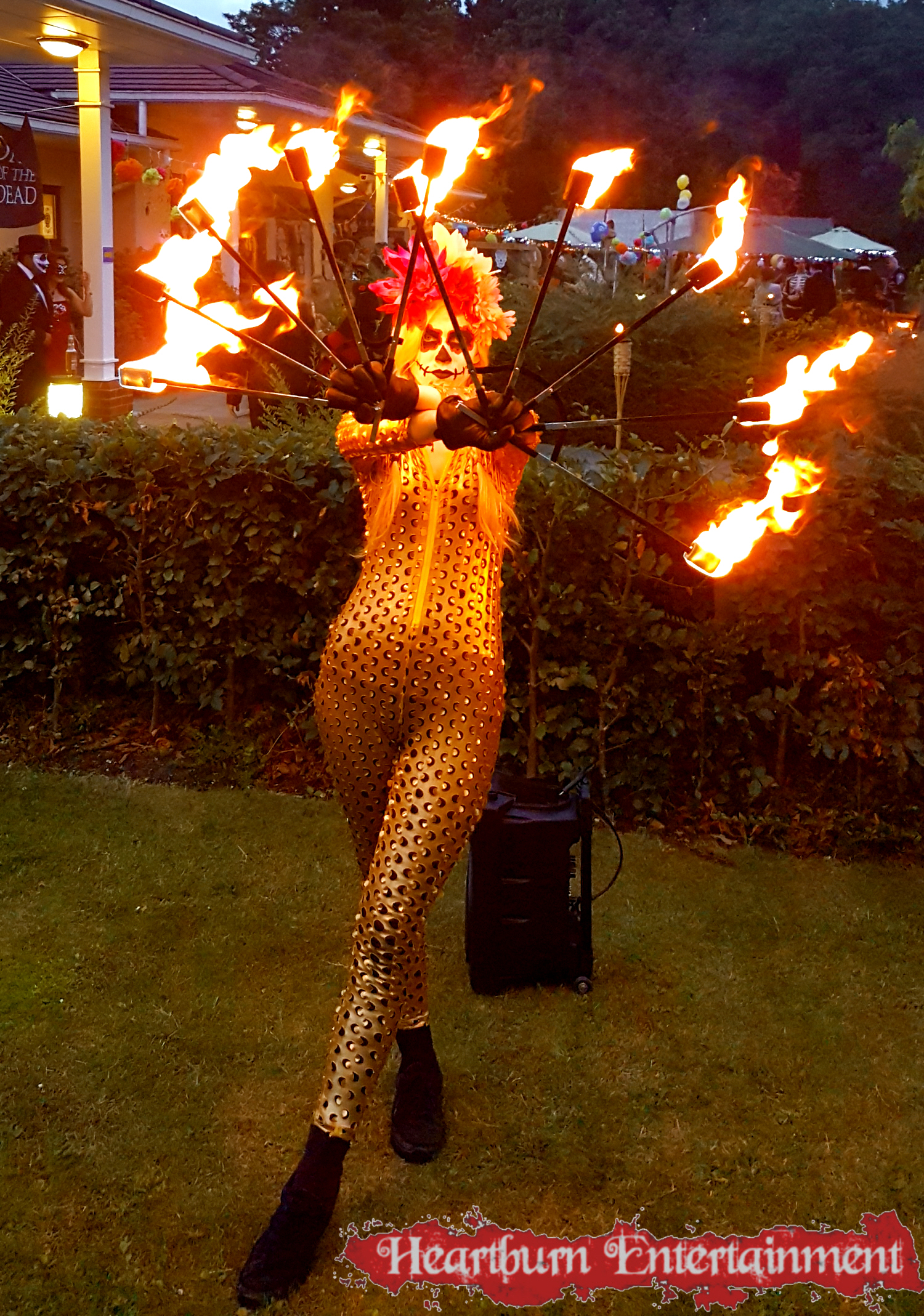 Our Day of the Dead fire performer can do a variety of fire acts including: