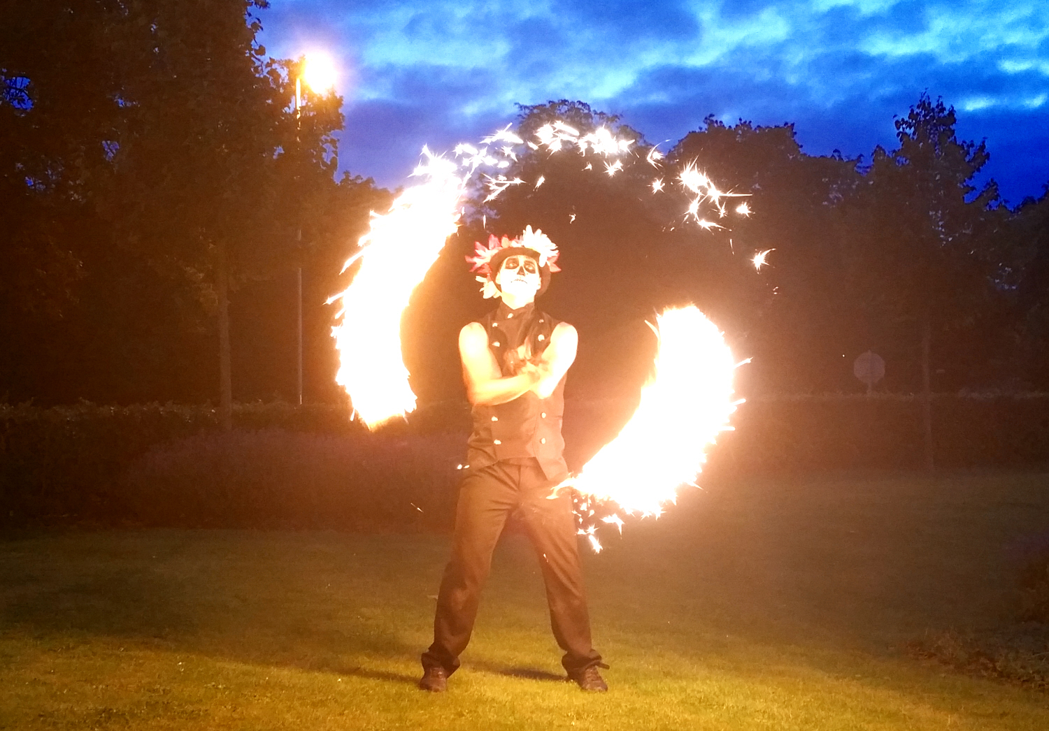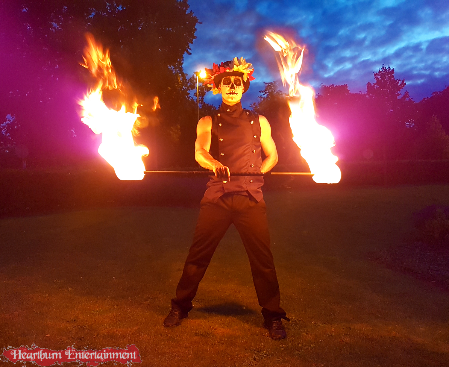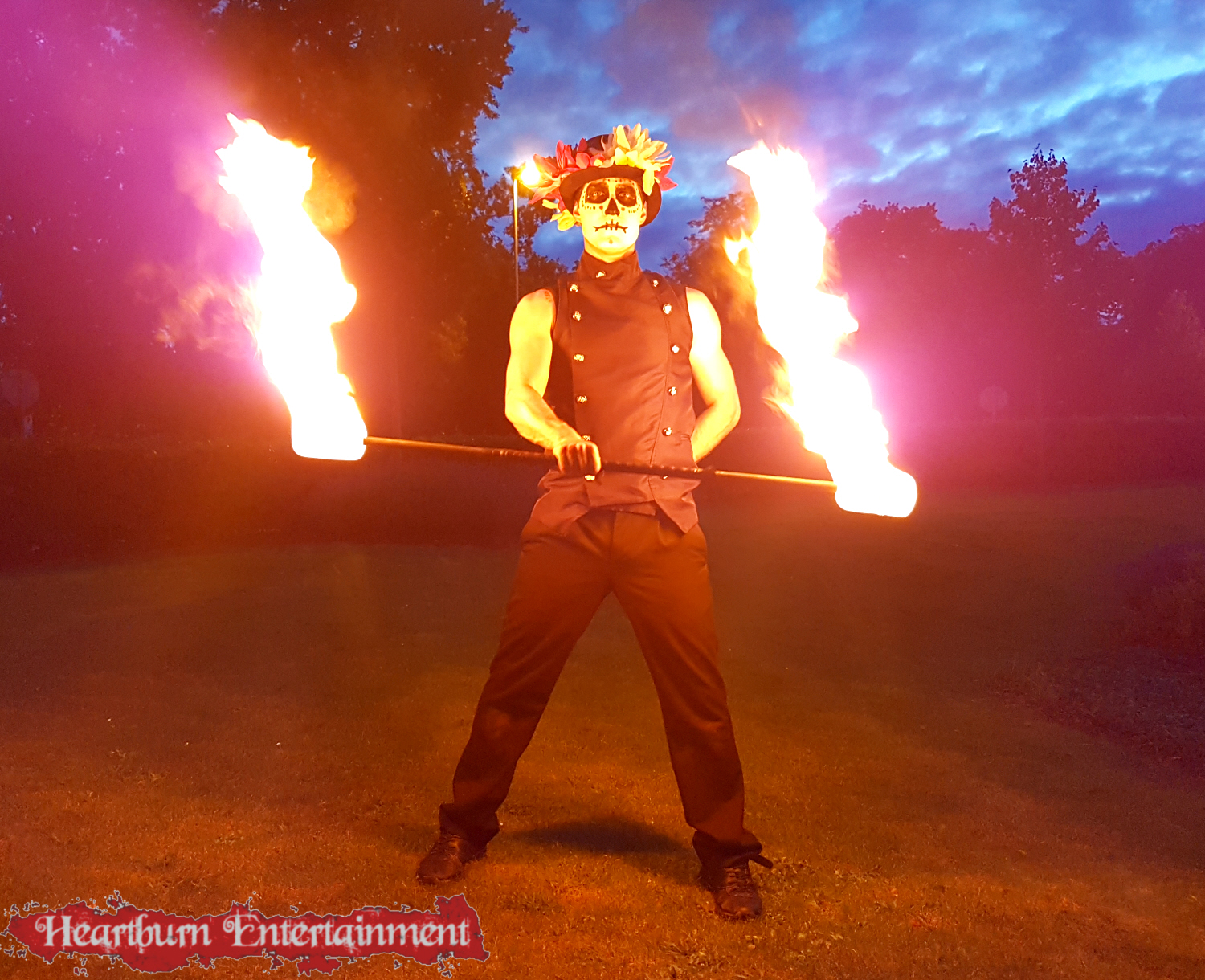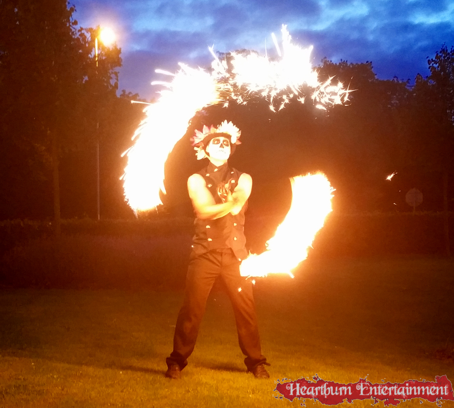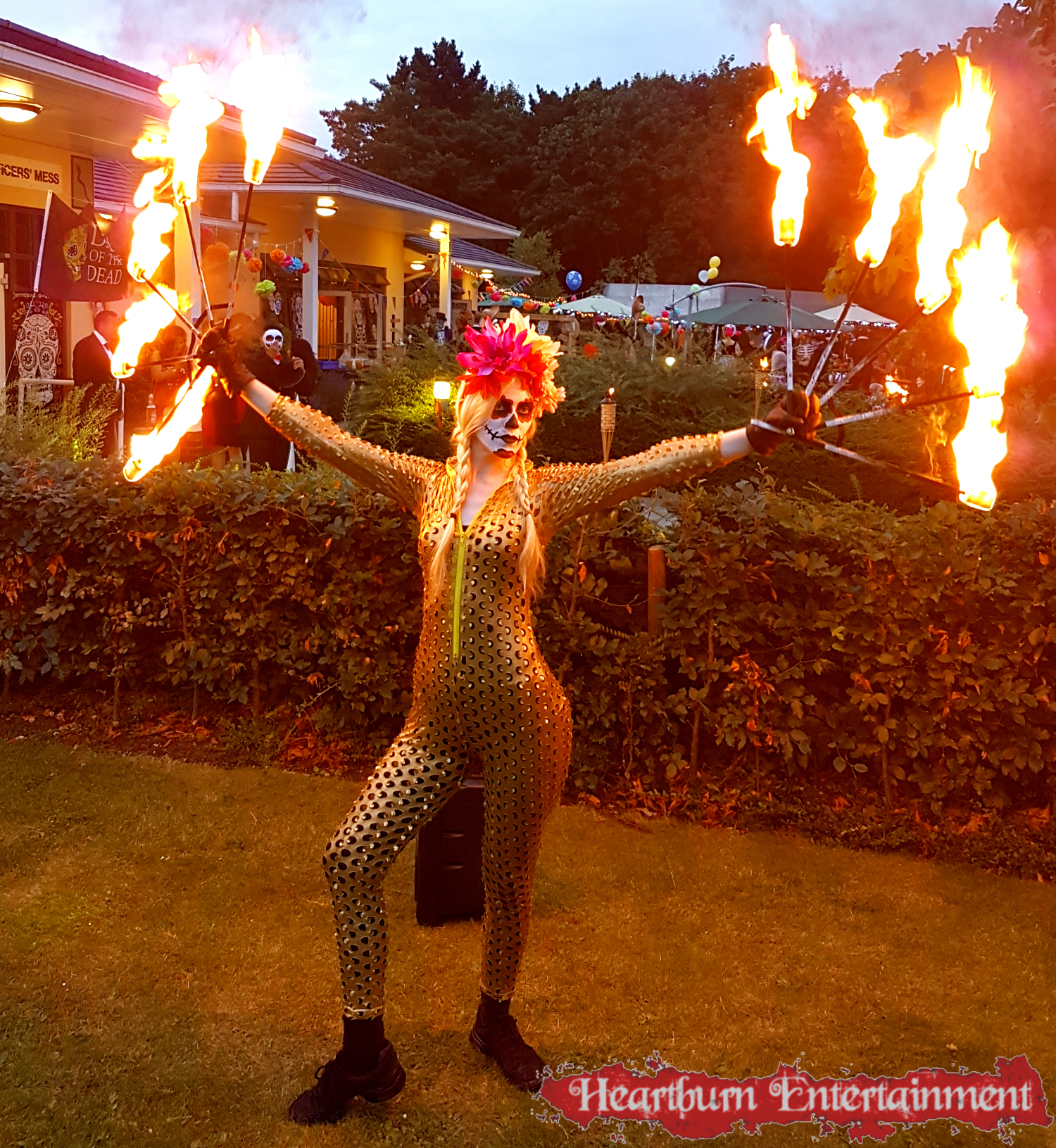 Our Day of the Dead fire performer can do a variety of fire acts including: