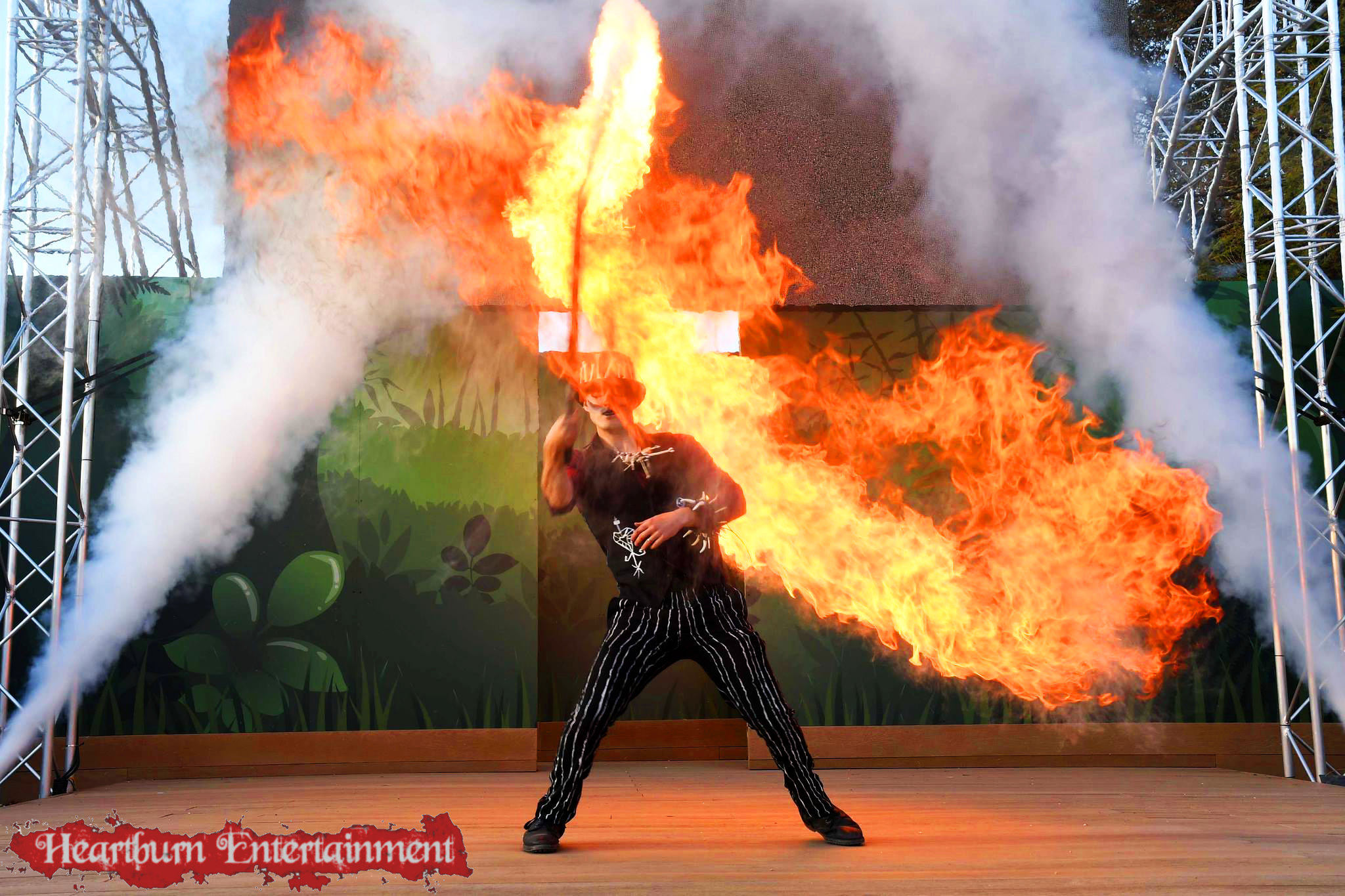 - Special effects fire including pyro poi, dragons breath and star dust