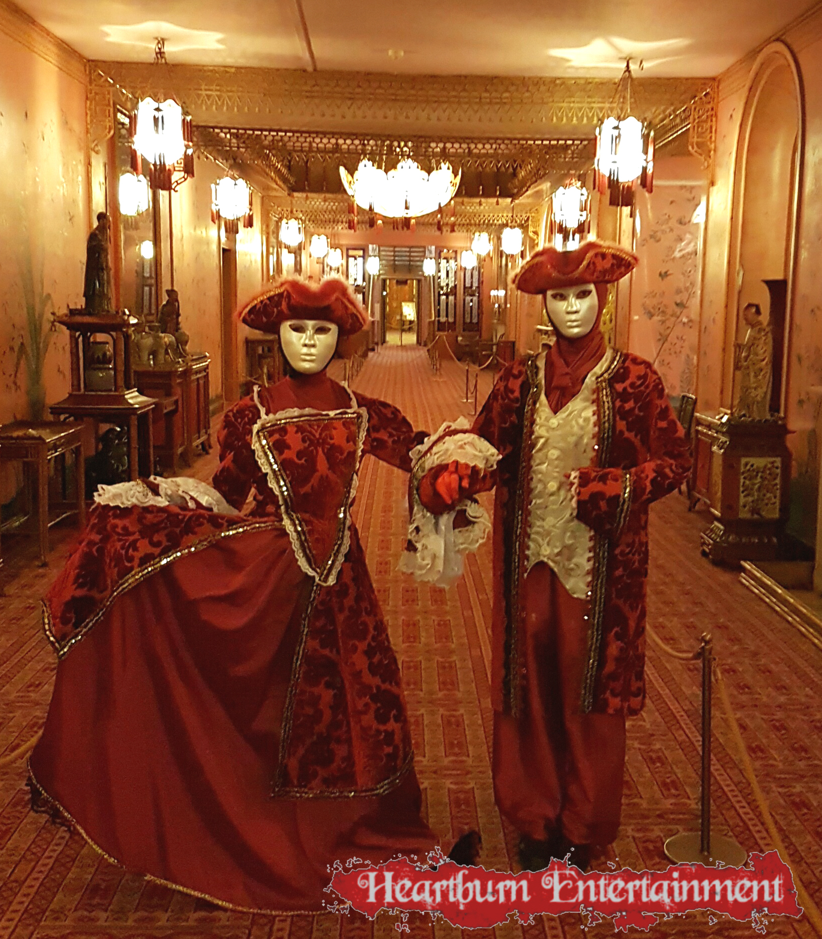 Our masquerade human statues are often booked alongside our masquerade stilt walkers and masquerade fire performers and fire show.
