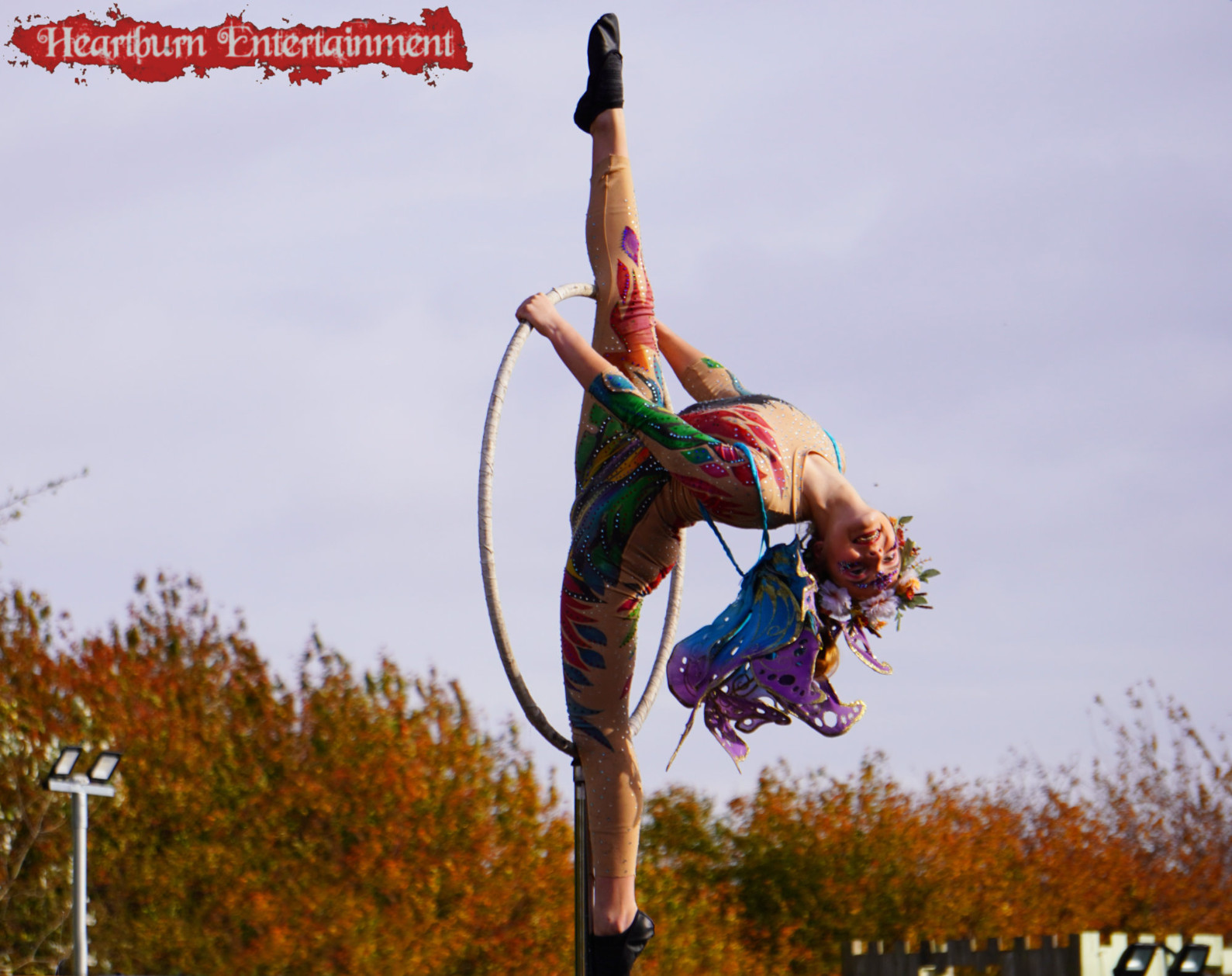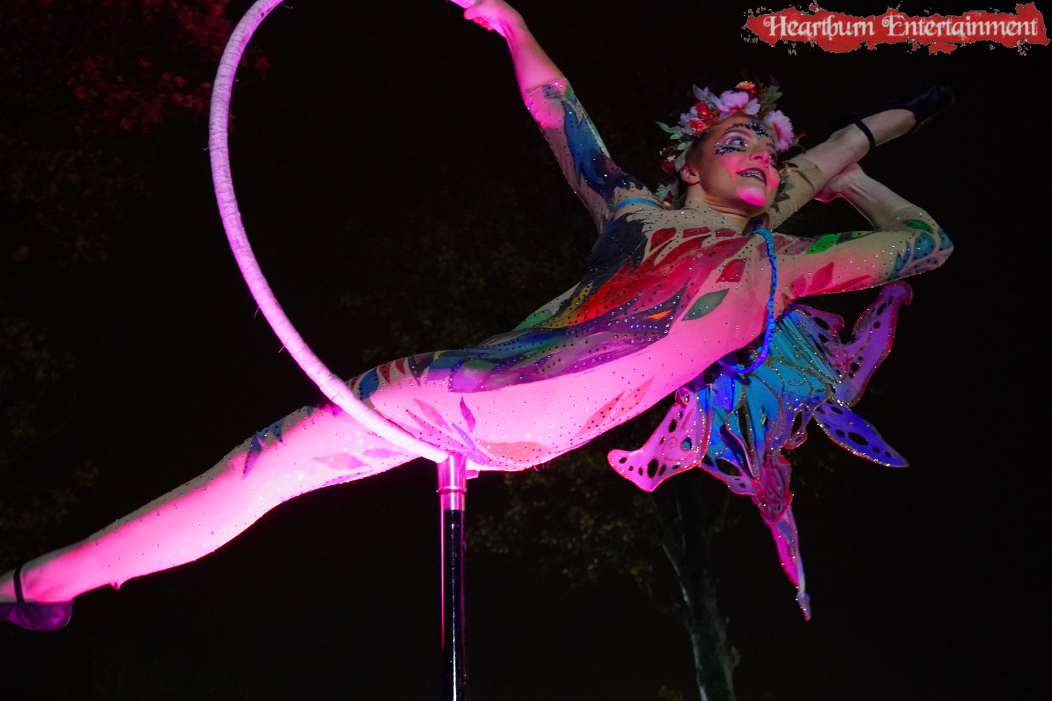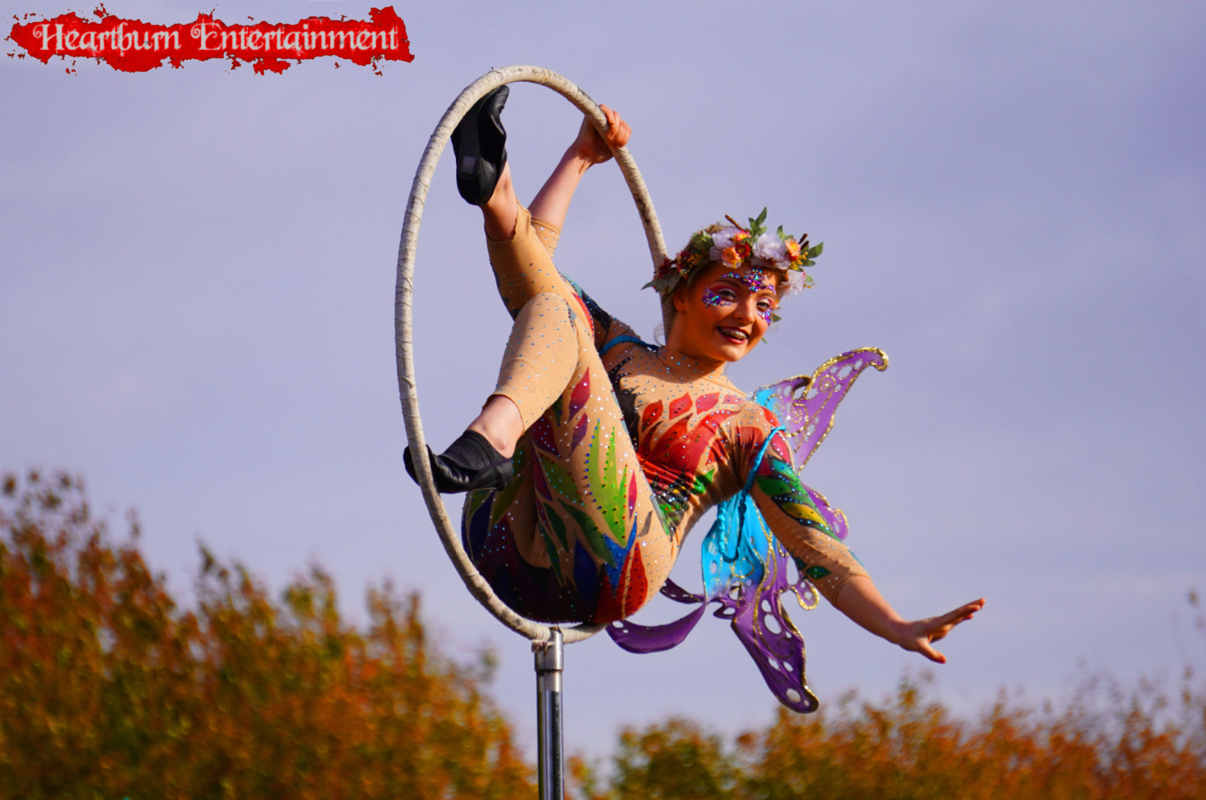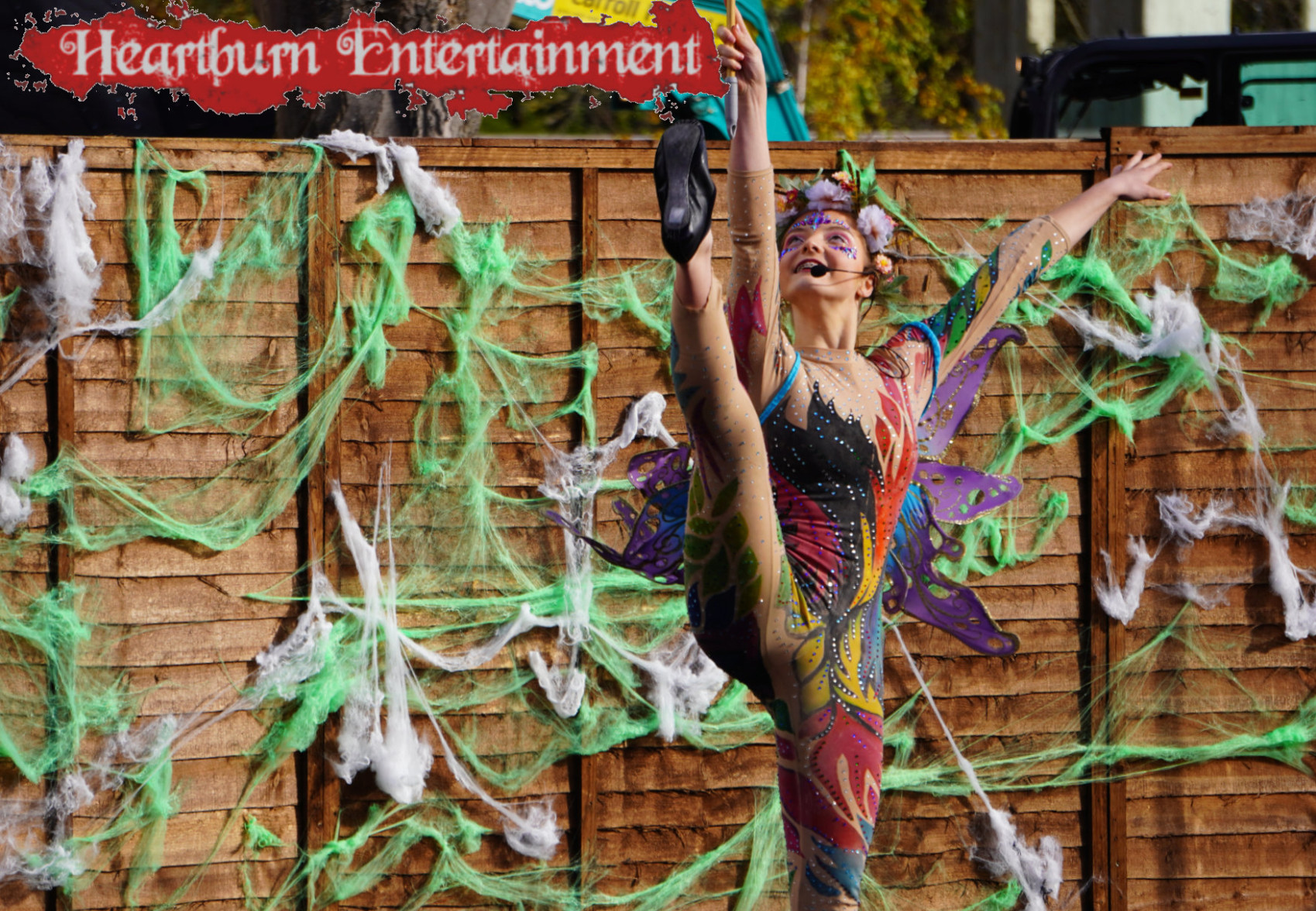 Our Halloween pantomime show can include a variety of circus acts including aerial hoop, fire breathing, juggling and acrobatics as well as singing, dancing and comedy!
