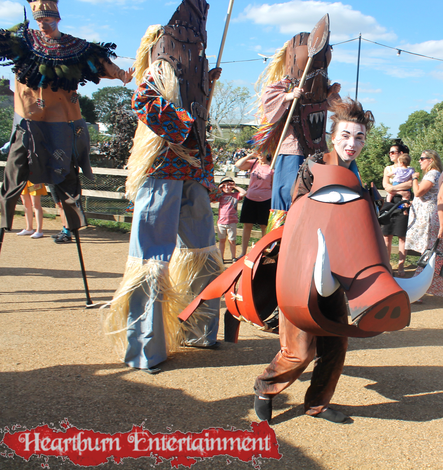 Our African themed stilt walkers are ideal for safari parks and zoos as well as Lion King themed parties.