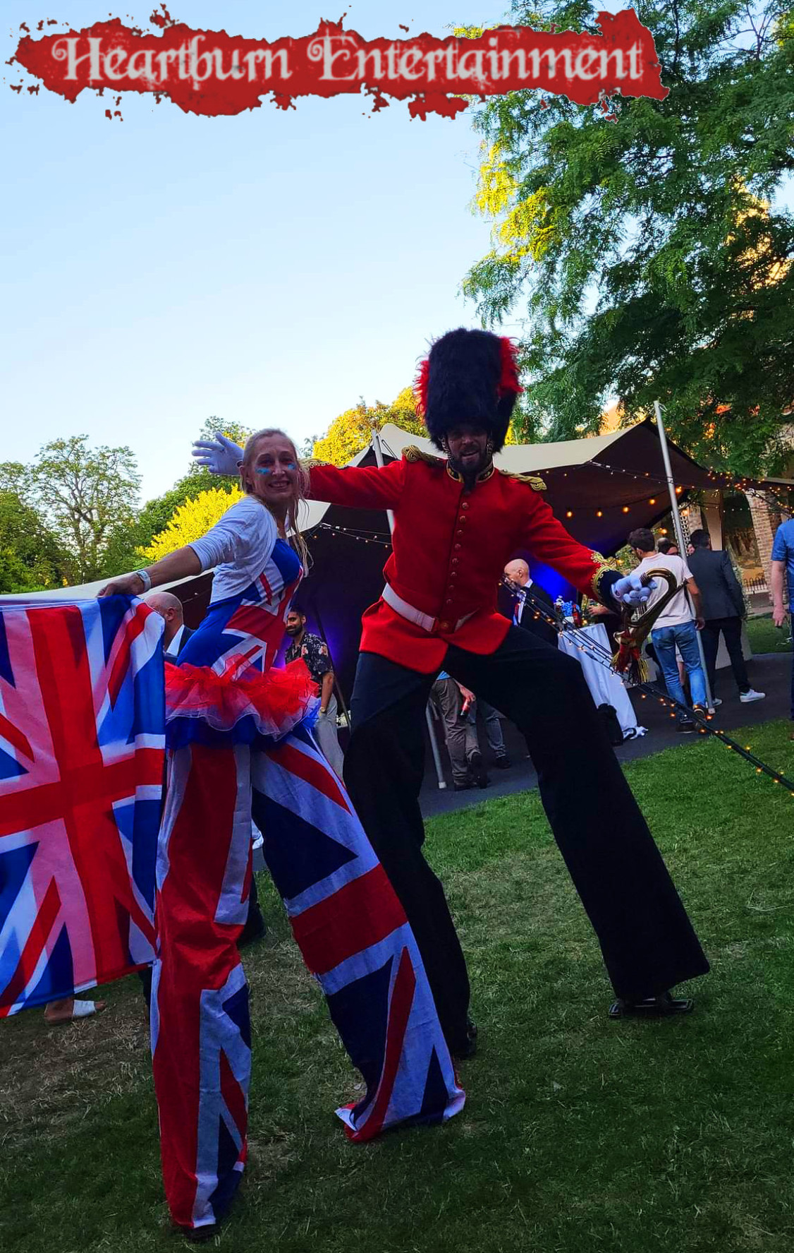 Dressed head to toe in the union jack our royal british stilt walkers are guaranteed to entertain your guests