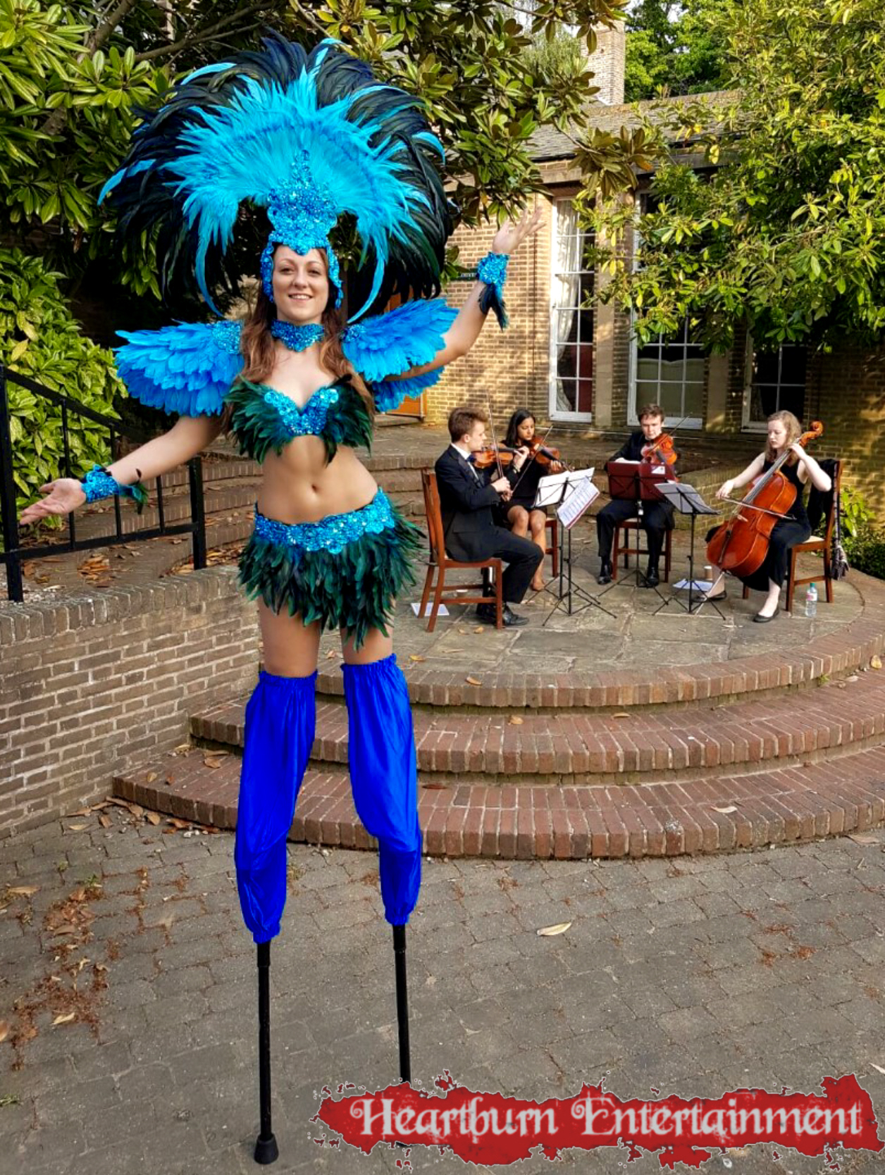 Our Rio carnival stilt walkers are ideal as meet and greet entertainment as guests love posing for photos with our beautiful carnival stilt walkers!